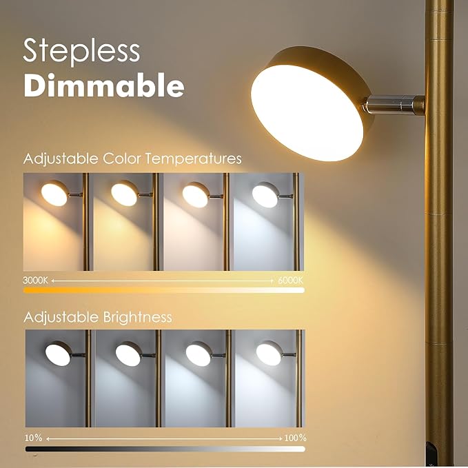 - Customizable Ambiance: More than just a lamp, it functions as a ambiance regulator. This tall lamp offers stepless dimming (10%-100%) and four color temperatures (3000K-6000K), letting you switch effortlessly between warm and cool light. Opt for warm light for parties or relaxing at home, or brighter, cooler light when focusing on tasks